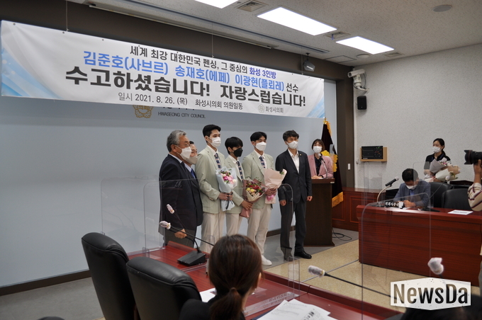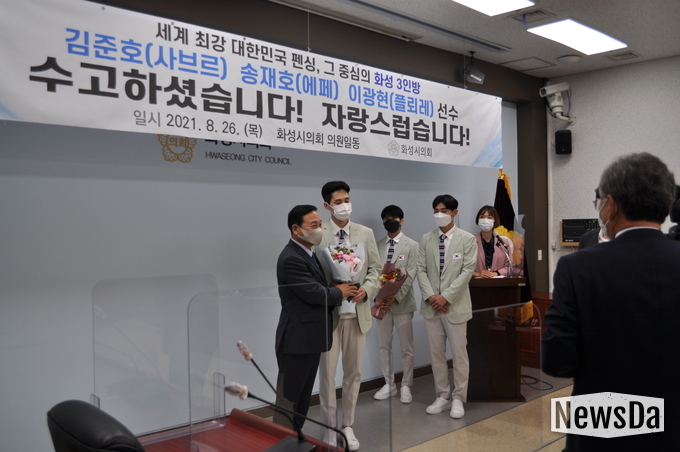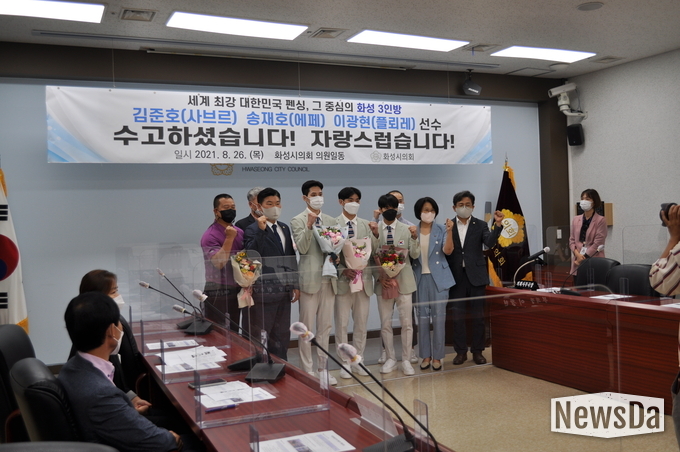 화성시는 26일 시의회 대회의실에서 2020 도쿄올림픽 메달리스트 및 출전선수 환영식을 개최했다. 이날 환영식에는 폔싱에 김준호, 송재호, 이광현 선수와 감독, 원유민 화성시의회 의장, 이창현 화성시의회 부의장과 시의원, 시 관계자들이 참석해 진행되었다.