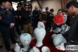 뉴스다 최광묵 기자 | 1300˚C를 견딘 청자의 빛은 영롱하기만 하다. ‘흙과 불 그리고 사람의 이야기’를 주제로 열리고 있는 제54회 강진청자축제. 지난 22일 강진군 대구면 고려청자박물관 제2호가마에서 화목가마 요출행사가 열린 가운데 옛 전통방식 그대로 소나무 장작을 이용해 48시간 동안 구워낸 청자를 꺼내고 있다.
