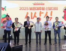 뉴스다 최광묵 기자 | 보은군은 17일 2025 보은대추축제 주무대에서 올해의‘보은 대추왕’시상식을 열었다. 군에 따르면 13일 농업기술센터에서 진행된 보은 대추왕 선발심사에서 속리산면 나기환 씨의 대추를 올해 최고 품질의 대추로 선정했다. 올해 대추왕 선발대회는 읍·면에서 추천된 13개 농가를 대상으로 대추연합회, 산림조합, 관계 공무원 등 5명이 심사위원으로 참여해 진행됐다. 심사는 1차 과원 평가와 2차 출품 생대추의 크기·무게·당도·색택 등 계측 및 외관 평가를 통해 이뤄졌으며, 그 결과 대추왕 1농가, 우수상 2농가, 장려상 3농가가 선정됐다. 이상기온으로 대추가 늦게 익는 등 농가들이 어려움을 겪는 상황에서도, 나기환 씨가 출품한 대추는 33브릭스의 높은 당도와 38mm의 크기를 자랑했으며 색택과 균일도 등에서도 높은 점수를 받아 최종적으로 ‘최고의 대추’로 인정받았다. 수상자는 △대추왕(1명) 나기환(속리산면) △우수상(2명) 서주석(회인면), 윤종문(보은읍) △장려상(3명) 김춘근(내북면), 백종도(내북변), 한권석(보은읍) 등이 차지했다. 이번 보은 대추왕 선발대회에
