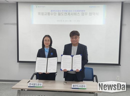 뉴스다 최광묵 기자 | 용인도시공사는 지난 30일 교통약자의 이동편의 증진을 위해 한국철도공사 수도권 광역본부와 업무 협약식을 진행했다고 밝혔다.