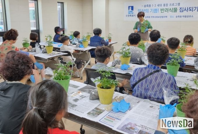 뉴스다 최광묵 기자 | 수원시 장안구 송죽동 지역사회보장협의체가 13일 송죽동 마을 공유소에서 ‘반려식물 집사되기’ 프로그램을 운영했다.