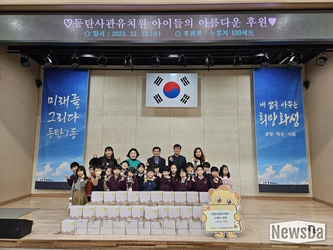 이날 전달식은 동탄 7동 행정복지센터 다목적실에서 동탄 사관유치원생, 교직원 복지센터 직원들이 참석해 전달됐다.