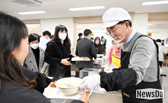 안산시는 지난 2일 오후 시청 구내식당에서 이민근 안산시장과 김대순 부시장이 직원들에게 떡국을 배식하며 새해 인사와 함께 시정 발전을 위해 열심히 업무에 임해준 데 대한 감사의 마음과 격려를 전했다고 3일 밝혔다.