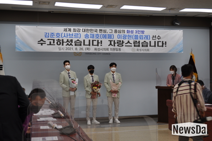 화성시는 26일 시의회 대회의실에서 2020 도쿄올림픽 메달리스트 및 출전선수 환영식을 개최했다. 이날 환영식에는 폔싱에 김준호, 송재호, 이광현 선수와 감독, 원유민 화성시의회 의장, 이창현 화성시의회 부의장과 시의원, 시 관계자들이 참석해 진행되었다.