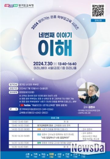 뉴스다 최광묵 기자 | 경기도교육청이 네 번째 ‘찾아가는 온품 학부모교육’을 오는 30일 마리나베이 서울(김포시 소재)에서 운영한다.