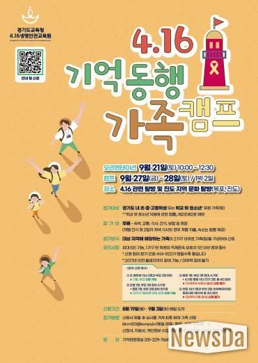 뉴스다 최광묵 기자 | 경기도교육청4.16생명안전교육원이 오는 19일부터 다음달 3일까지 도내 초, 중, 고등학생 또는 학교 밖 청소년을 대상으로 ‘4.16 기억 동행 가족 캠프’참가자를 모집한다.