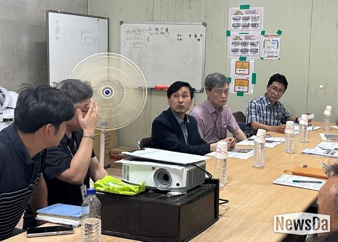 뉴스다 최광묵 기자 | 경기도교육청 김진수 제1부교육감이 9월 개교 예정인 평택 영신초를 사전 점검했다. 공사관계자와 교육청 직원에게 지속되는 폭염에 따른 안전사고 방지를 주문했다.