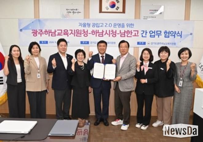 뉴스다 최광묵 기자 | 광주하남교육지원청은 2024년 9월 23일 14시 40분 광주하남교육지원청에서 세 기관 대표 등이 참석한 가운데 2025년 교육부 자율형 공립고 2.0 운영 지정을 위한 협약을 맺었다.
