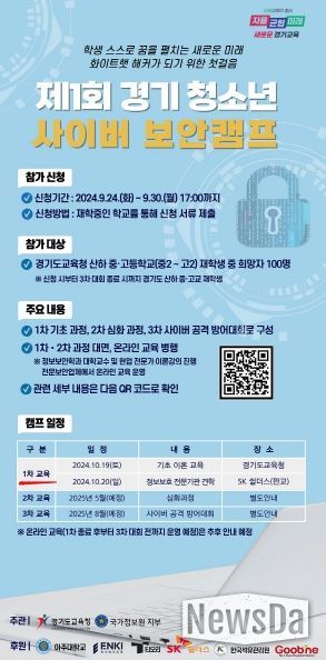 경기도교육청이 전국 시도교육청 최초로 국가정보원(지부)과 공동으로 ‘제1회 경기 청소년 사이버 보안 캠프’를 개최한다.