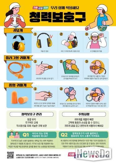 이번에 배포한 관련 자료는 ▲청력보호구 착용 교육 동영상 ▲청력보호구 종류별 착용 방법 안내 홍보물(포스터) ▲안전보건표지 등이다.