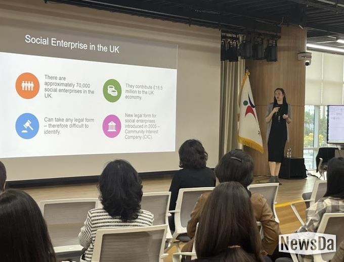 이어 글로벌 교육 관점에서 ▲사회적기업의 정의 및 특징 ▲사회적기업 소개 ▲영국 및 한국의 대표적 사회적기업 관련 정보 등을 중심으로 강의를 진행했다.