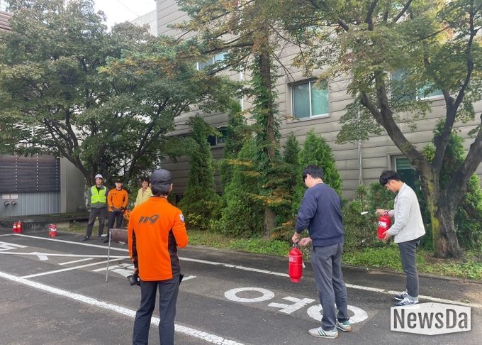 뉴스다 최광묵 기자 | 경기도교육청이 29일 조원청사 인재개발국과 수원소방서, 정자119안전센터, 조원청사 공사 관계자가 함께 참여하는 민·관 합동 소방훈련을 실시했다.
