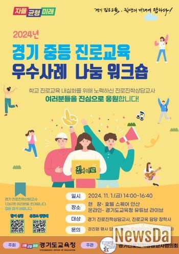 뉴스다 최광묵 기자 | 경기도교육청이 학교 진로교육 내실화를 위해 ‘경기 중등 진로교육 우수사례 나눔 워크숍’을 안산에서 개최한다.