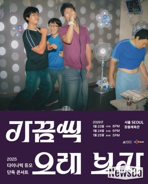 2025 다이나믹 듀오 단독 콘서트 '가끔씩 오래 보자'는 오는 12월 20, 21일 부산 벡스코 오디토리움, 24일 대구 엑스코 동관 4홀, 27일 광주 김대중컨벤션센터 다목적홀, 내년 1월 23, 24, 25일 서울 장충체육관에서 개최된다.