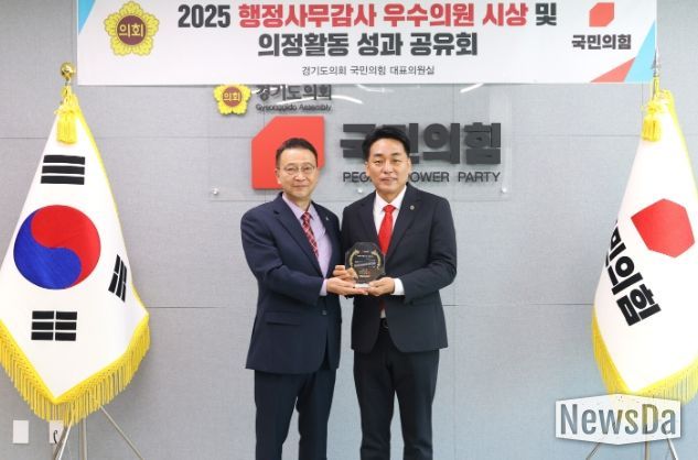 뉴스다 최광묵 기자 | 경기도의회 교육행정위원회 이은주 의원(국민의힘, 구리2)이 18일 경기도의회 국민의힘으로부터 ‘2025 행정사무감사 우수의원상’을 수상했다. 이 의원은 올해 행정사무감사에서 교육행정 전반의 구조적 문제를 날카롭게 지적하며 실질적 정책 개선을 이끈 공로를 인정받았다.