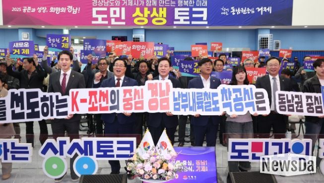 뉴스다 최광묵 기자 | 경상남도는 18일 거제 반다비체육센터에서 열린 ‘도민 상생토크’에서 기업혁신파크, 광역교통망, 미래산업 등을 연계한 성장전략을 제시하며 지원 의지를 밝혔다.