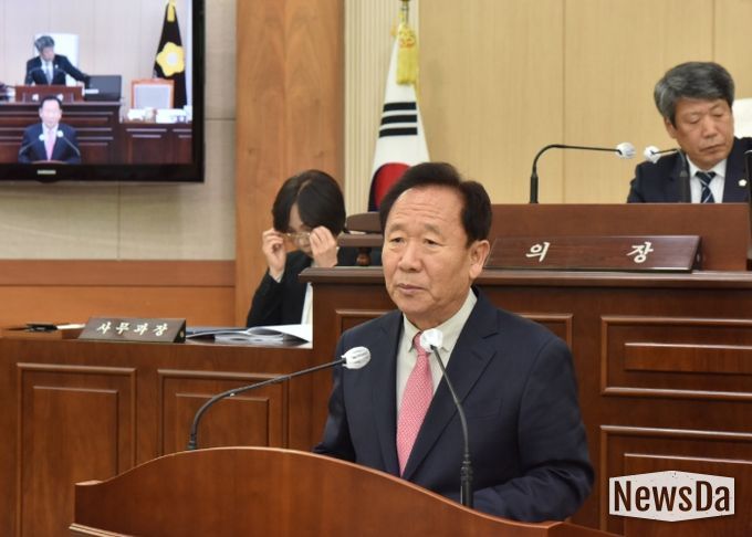 이어 시정연설을 통해 △글로벌 문화교류 허브 도약 △농업 경쟁력 강화 △전국 최고 관광도시 기반 확립 △차별 없는 포용복지 실현 △산림·치유 융합도시 조성 △지역개발을 통한 균형발전 등 6대 군정 운영 방향을 제시했다.