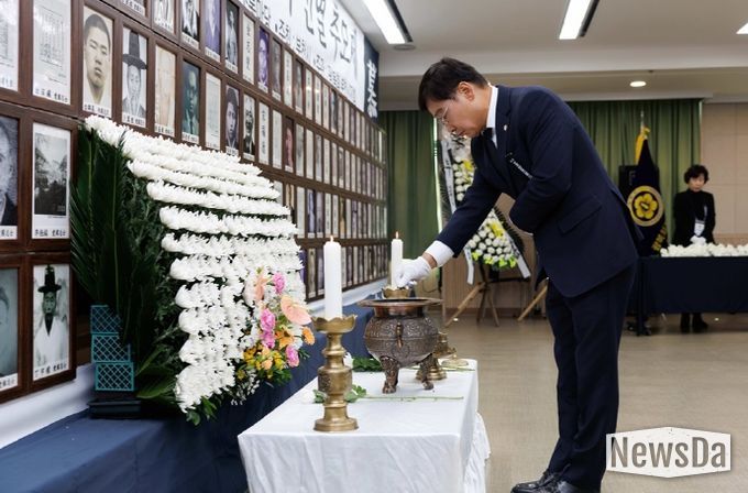 뉴스다 최광묵 기자 | 김병전 부천시의회 의장은 21일, 부천시청 소통마당에서 열린 항일독립유공자 선열 추모제에 참석해 독립을 위해 헌신하신 순국선열을 향한 깊은 추모와 존경의 마음을 전했다.
