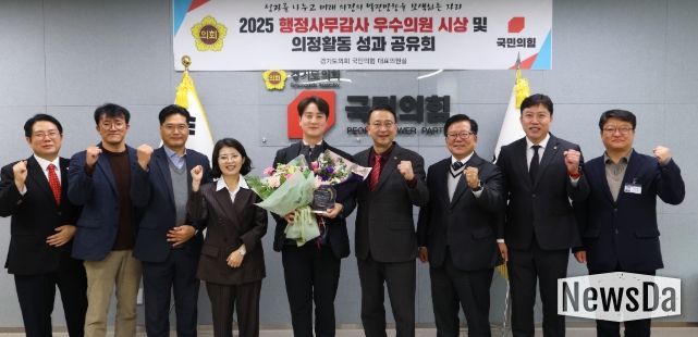 뉴스다 최광묵 기자 | 경기도의회 교육행정위원회 김일중 의원(국민의힘, 이천1)이 24일 오전 경기도의회 국민의힘 회의실에서 열린 ‘행정사무감사 우수의원 시상 및 의정활동 성과 공유회’에서 ‘행정사무감사 우수의원’에 선정됐다. 이번 수상은 2025년도 행정사무감사에서 도민 중심의 정책 대안을 제시하며 실효성 있는 민생 교육행정을 구현하는 데 기여한 점이 높게 평가된 결과다.
