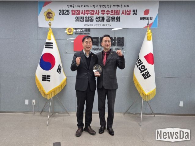 뉴스다 최광묵 기자 | 경기도의회 농정해양위원회 부위원장 윤종영 의원(국민의힘, 연천)이 2025년 경기도의회 행정사무감사에서 도정의 구조적 문제를 집요하게 파고들고 실질적 개선을 촉구한 공로를 인정받아, 24일 ‘2025년 행정사무감사 우수의원’ 표창을 수상했다.