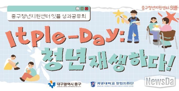 뉴스다 최광묵 기자 | 대구 중구청년지원센터는 오는 6일 오전 11시부터 오후 8시까지 센터 전 공간에서 성과공유회 ‘잇플데이’를 개최한다.
