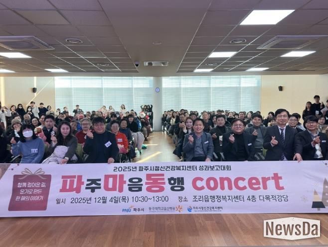 뉴스다 최광묵 기자 | 파주시는 지난 4일 파주시정신건강복지센터와 함께 2025년 파주시정신건강복지센터 성과 보고대회 ‘파주마음동행 콘서트’를 개최하고 한 해 동안의 정신건강사업 추진 성과를 공유했다고 밝혔다.