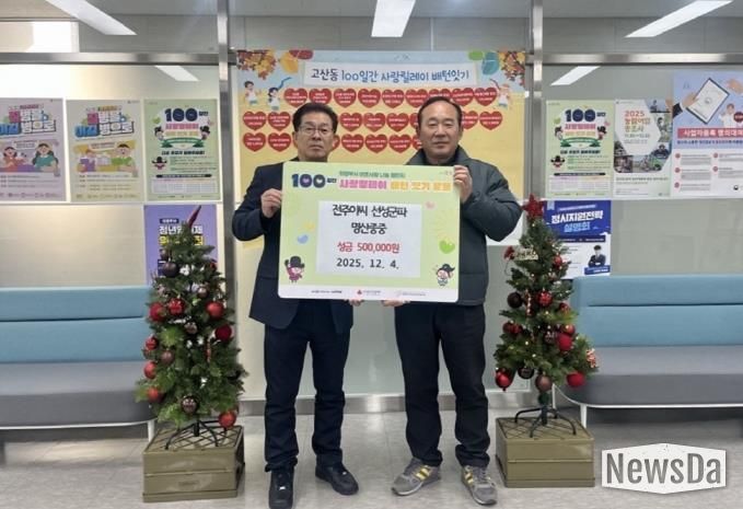 뉴스다 최광묵 기자 | 의정부시 고산동주민센터는 12월 4일 전주이씨 선성군파 명산종중이 고산동 저소득층을 위한 성금 50만 원을 전달하며 ‘100일간 사랑릴레이 배턴 잇기’에 동참했다고 밝혔다.