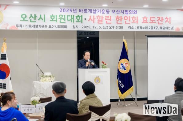 뉴스다 최광묵 기자 | 바르게살기운동 오산시협의회는 지난 5일 벨라노떼웨딩(구 웨딩의전당)에서 ‘2025년 회원대회 및 사할린 효도잔치’를 성황리에 개최했다.