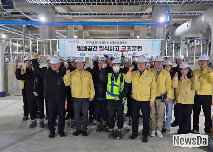 뉴스다 최광묵 기자 | 파주시는 지난 16일 운정 공공하수처리시설에서 하수도 분야 비상 대응 역량 강화를 위해 녩년 밀폐공간 질식사고 대비 비상 대응 모의훈련’을 실시했다고 밝혔다.