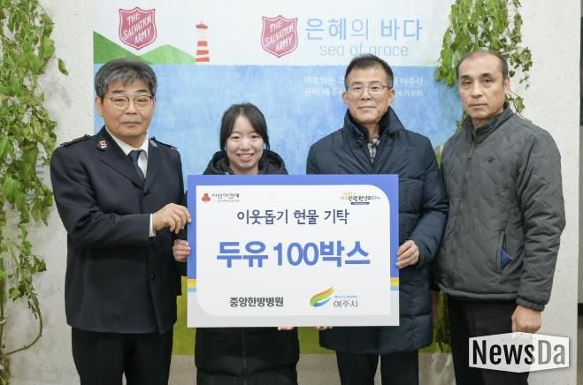 뉴스다 최광묵 기자 | 중앙한방병원에서는 지난 16일 여주시에 이웃돕기 현물로 130만원 상당의 두유 100박스를 기탁했다.