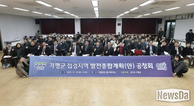 뉴스다 최광묵 기자 | 가평군과 경기도는 16일 오후 가평군청 대회의실에서 ‘경기도 접경지역 발전종합계획 변경(안)’에 가평군 신규사업 반영을 위한 주민 및 전문가 공청회를 공동으로 개최했다.