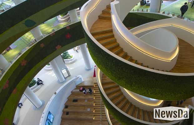 경기도서관은 2025년 10월에 개관한 신생 도서관이다. 지상 5층 건물은 나선형 구조와 창살 문양으로 설계되어 외관부터 남다르다. 문을 열고 들어서면 이곳이 단순히 책을 빌리는 장소가 아니라는 사실을 곧 알게 된다. 칸막이가 없는 동선 설계로 공간 전체가 하나의 거대한 서재 혹은 거실을 연상케 한다. 층과 층을 연결하는 길에는 ‘경기책길’이라는 이름을 붙였다. 벽면이 모두 통창이고 곳곳에 작은 정원을 꾸며놓아서 마치 숲에서 책을 읽는 느낌이 들기도 한다.