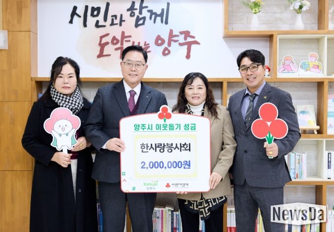 뉴스다 최광묵 기자 | 양주시가 16일 한사랑봉사회로부터 이웃돕기 성금 200만 원을 기탁받았다.