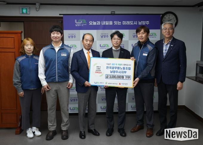 뉴스다 최광묵 기자 | 남양주시는 17일 전국공무원노동조합 남양주시지부가 어려운 환경 속에서 손자녀를 양육하고 있는 가정위탁 조손가구에 생활안정 후원금 300만 원을 전달하며 따뜻한 나눔을 실천했다고 밝혔다.
