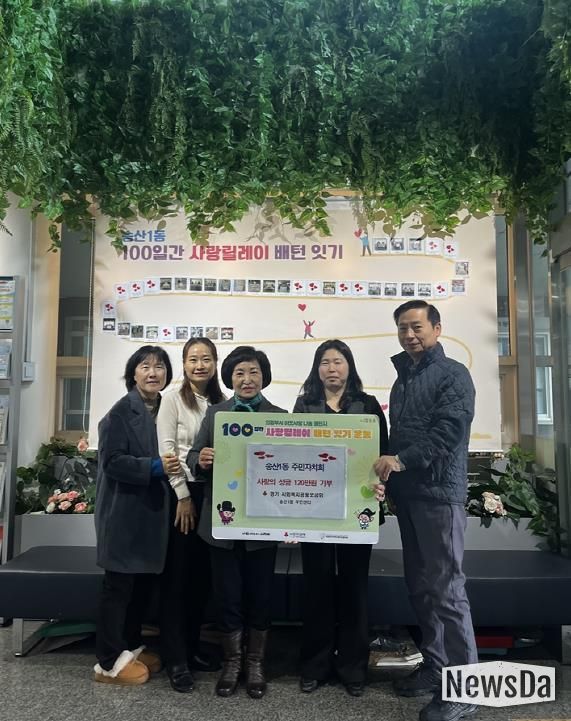 뉴스다 최광묵 기자 | 의정부시 송산1동주민센터는 12월 11일 송산1동 주민자치회가 성금 120만 원을 기탁하며 ‘100일간 사랑릴레이 배턴 잇기’에 동참했다고 밝혔다.