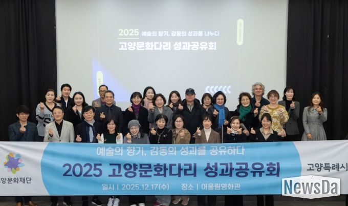 뉴스다 최광묵 기자 | 고양문화재단이 주관하고 고양특례시와 경기문화재단이 후원한 ‘2025 고양문화다리 성과공유회’가 참여 예술인, 예술단체, 시민모니터링단의 참여 속에 지난 17일 고양어울림누리 어울림상영관에서 성황리에 마무리됐다.