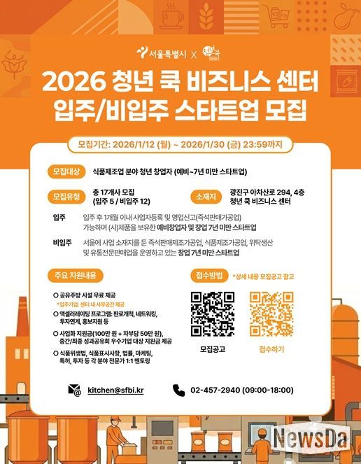 뉴스다 최광묵 기자 | 서울시가 전 세계적인 K-푸드 열풍 속에서 미래 먹거리 산업의 핵심인 식품 제조와 푸드테크 분야를 선도할 창의적인 청년 창업가에 대한 지원을 2026년에도 이어간다.
