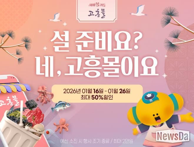 뉴스다 최광묵 기자 | 고흥군이 운영하는 공식 온라인 쇼핑몰 고흥몰은 설 명절을 앞두고 1월 16일부터 26일까지 열흘간 설 명절 장보기 기획전 ‘설 준비요? 네, 고흥몰이요’를 운영한다.
