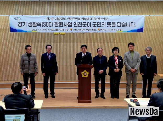 뉴스다 최광묵 기자 | 경기도의회 농정해양위원회 부위원장 윤종영 의원(국민의힘, 연천)은 14일 오후 4시, 경기도의회 브리핑룸(302호)에서 기자회견을 열고 ‘경기 생활쏙(SOC) 환원사업’이 공공개발 이익을 도민의 삶으로 되돌리는 첫 번째 실질적 집행 사례가 되어야 한다고 강력히 역설했다.