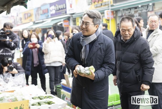 뉴스다 최광묵 기자 | 김동연 경기도지사가 경기도 지원으로 폭설 피해 복구 작업이 진행 중인 의왕 도깨비시장을 찾아 상인들을 격려했다. 2024년 11월 의왕 도깨비시장이 폭설 피해를 당한 후 세 번째 방문이다.