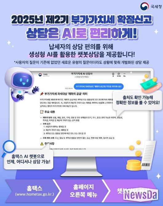 뉴스다 최광묵 기자 | ■ 2025년 제2기 부가가치세 확정신고 상담은 AI로 편리하게!