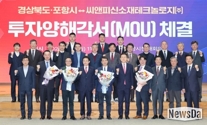 뉴스다 최광묵 기자 | 포항시와 경상북도는 19일 포항시청 대회의실에서 씨앤피신소재테크놀로지㈜와 5,000억 원 규모의 투자양해각서(MOU)를 체결했다.