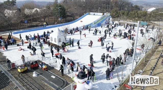 뉴스다 최광묵 기자 | 의왕시 대표 관광 명소인 왕송호수공원(왕송못동로 307)을 배경으로 펼쳐지는 겨울 축제 ‘겨울아 놀자’에서 방학을 맞은 아이들이 눈썰매를 타며 즐거운 시간을 보내고 있다.