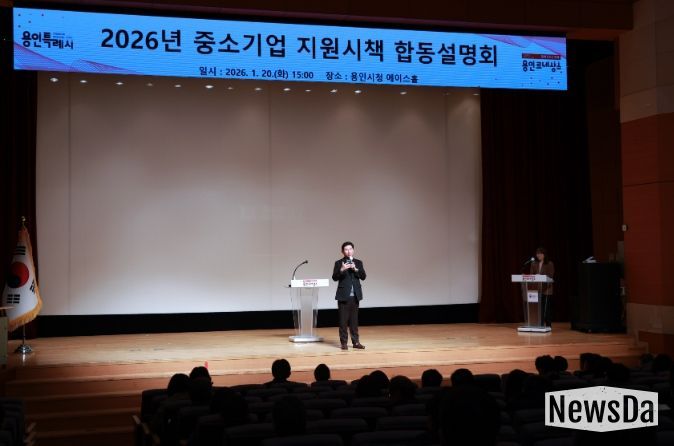 뉴스다 최광묵 기자 | 용인특례시는 20일 시청 에이스홀에서 지역 내 중소기업 지원 정책을 설명하는 ‘2026년 중소기업 지원시책 합동설명회’를 열었다.