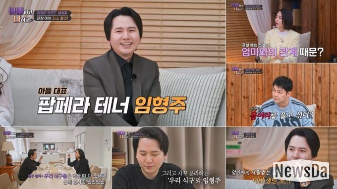 21일 방송되는 TV CHOSUN '아빠하고 나하고 시즌3'에서는 ‘세계적인 팝페라 테너’ 임형주와 세계적인 아티스트를 키워낸 ‘역대급 카리스마’의 임형주 어머니가 등장한다. 임형주의 어머니는 직접 아들의 무대를 진두지휘하며 의상, 조명, 음악 하나하나 세세하게 챙기며 소속사 대표이자 ‘여장부’ 엄마 면모를 선보인다. 임형주는 “저와 엄마의 관계가 특별하다. 저도 이제 불혹이고 어머니도 칠순을 바라보는데 그동안 보낸 시간보다 보낼 시간이 더 적겠다 싶어서 응어리를 풀어내고 싶다”라며 ‘아빠하고 나하고’를 찾은 이유를 밝혔다. 이어 그는 어머니에 대해 “제가 너무 사랑하고 한편으로는 미워하는 애증의 대상이다”라고 덧붙였다. 남다른 카리스마를 지닌 임형주 어머니에 전현무는 “우리 엄마 같다. 우리 엄마도 엄격하다”라고 공감하며 임형주 모자(母子)가 어떤 관계일지 궁금해했다.
