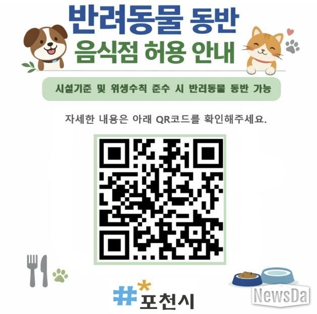뉴스다 최광묵 기자 | 포천시는 '식품위생법 시행규칙' 개정으로 반려동물 동반 음식점 운영이 제도적으로 가능해짐에 따라, 관련 기준을 마련하고 오는 3월 1일부터 반려동물 동반 출입 음식점 제도를 시행한다고 밝혔다.