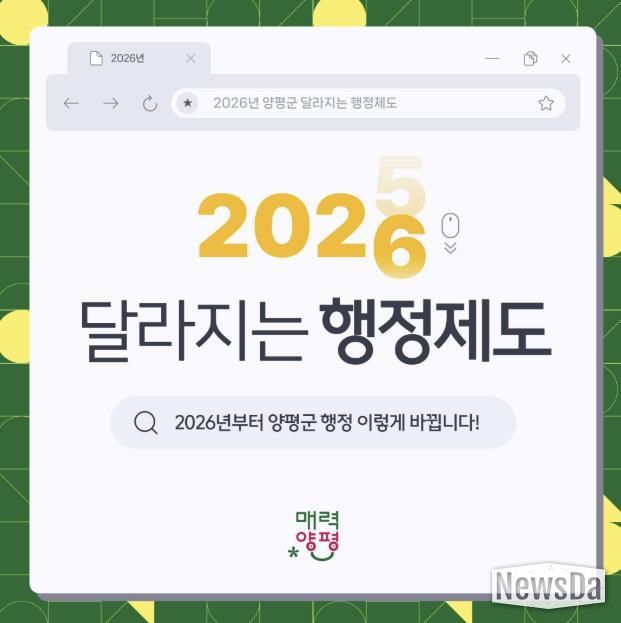뉴스다 최광묵 기자 | 양평군은 지난 16일, 2026년 새해를 맞아 보건·복지·청년·일반행정 분야의 행정제도를 확대·개선해 군민 생활 전반에 보다 촘촘한 지원과 체감도 높은 행정을 추진한다고 밝혔다.