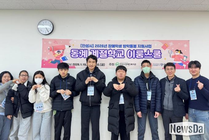 뉴스다 최광묵 기자 | 사회복지법인 한길복지재단에서 수탁 운영하는 안성시장애인복지관은 지난 1월 19일 발달장애 청소년 6명을 대상으로 2026년 동계 계절학교 ‘이룸스쿨’을 개강했다.