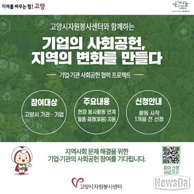 뉴스다 최광묵 기자 | 고양시자원봉사센터는 기업·기관의 자원을 지역사회 현안과 연결하는 ‘협력형 사회공헌 사업’을 2026년부터 본격 추진한다고 밝혔다.