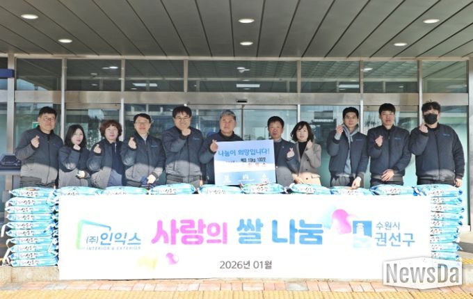 뉴스다 최광묵 기자 | 수원시 권선구는 21일 ㈜인익스에서 설 명절을 맞이하여 후원한 백미(10kg) 100포에 대한 전달식을 진행했다.